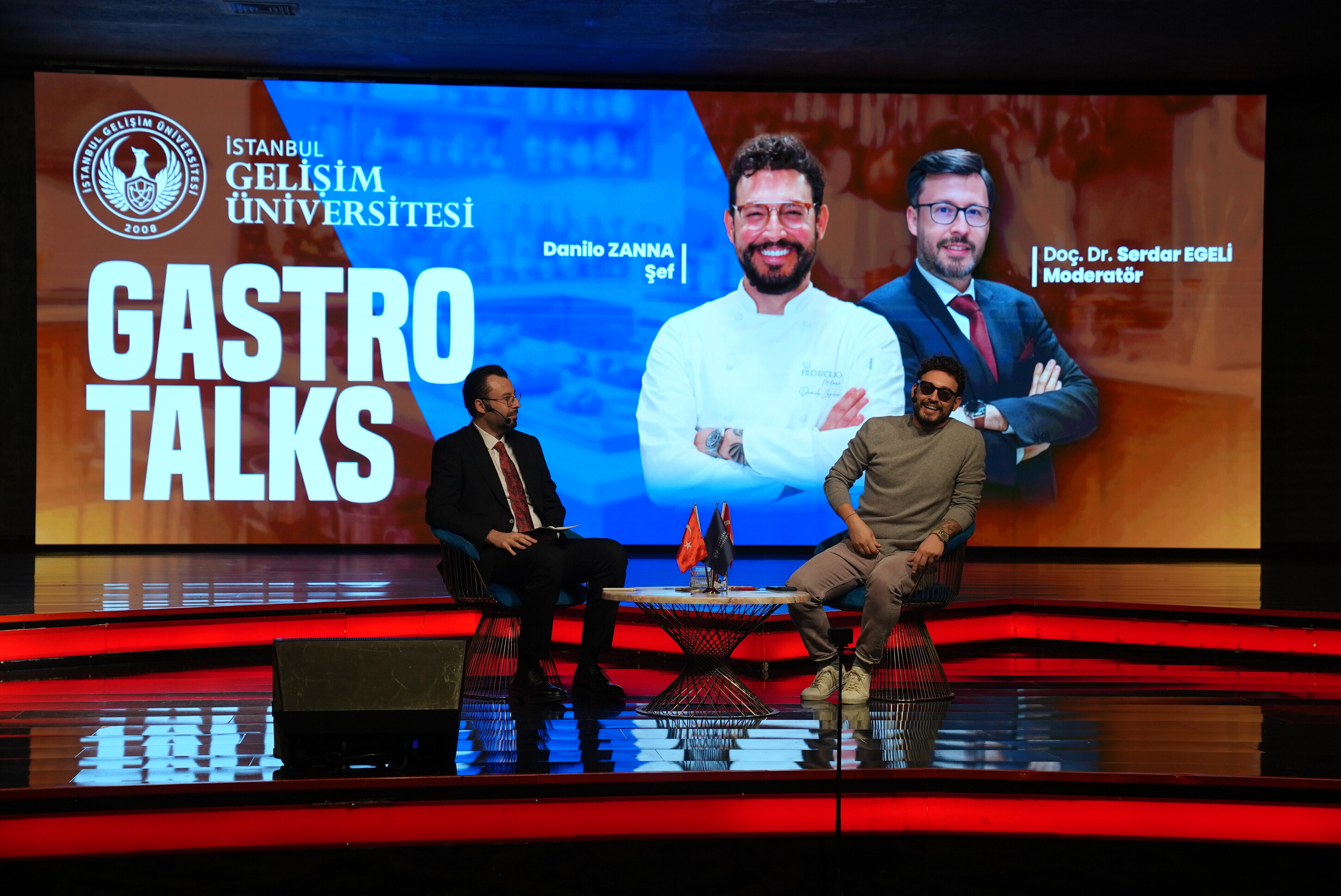 İstanbul Gelişim Üniversitesi, gastronomi dünyasının sevilen isimlerinden Danilo Zanna’yı öğrenciler ve akademisyenlerle buluşturan özel bir etkinliğe ev sahipliği yaptı. Üniversite bünyesinde düzenlenen Gastrotalks etkinliği, gastronomi alanına ilgi duyan öğrenciler için ilham verici bir söyleşiye sahne oldu. Yoğun katılımla gerçekleşen etkinliğin moderatörlüğünü, İstanbul Gelişim Üniversitesi Genel Sekreteri Doç. Dr. Serdar Egeli üstlendi. Samimi ve dinamik atmosferde gerçekleşen söyleşide Danilo Zanna, gastronomi kariyerine dair deneyimlerini, mutfak kültürüne bakışını ve genç şef adaylarına tavsiyelerini paylaştı.